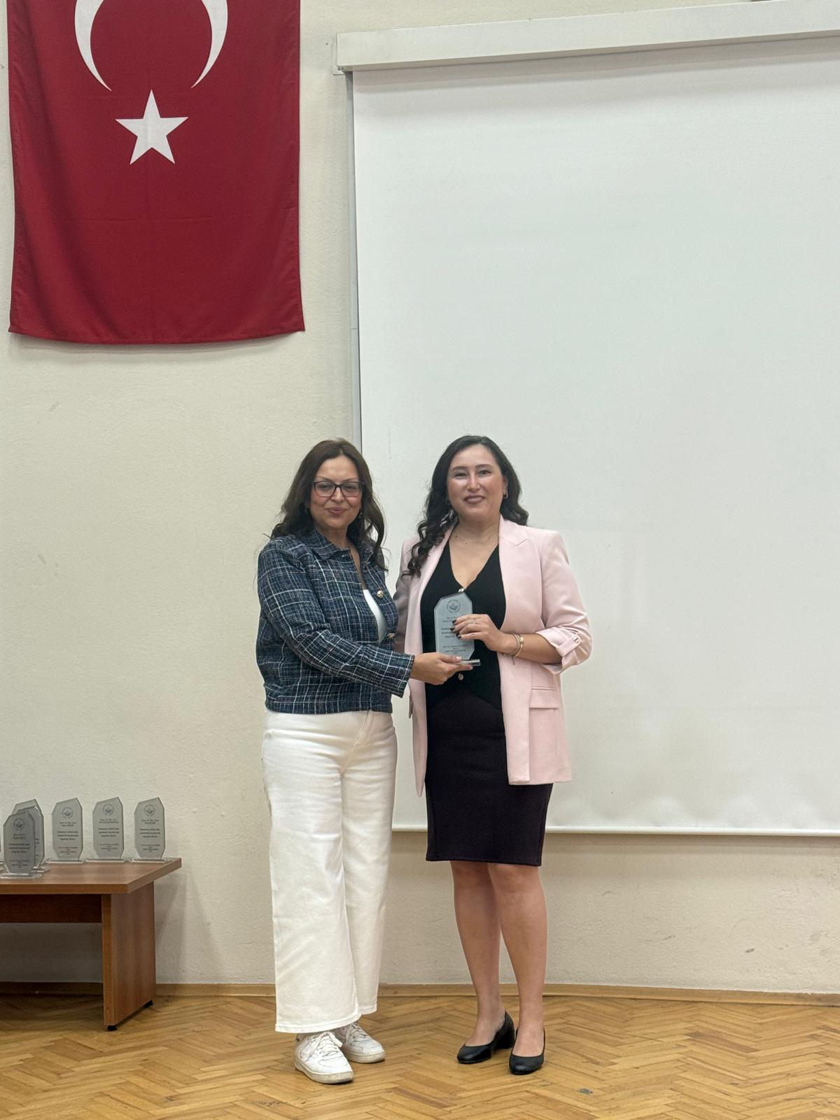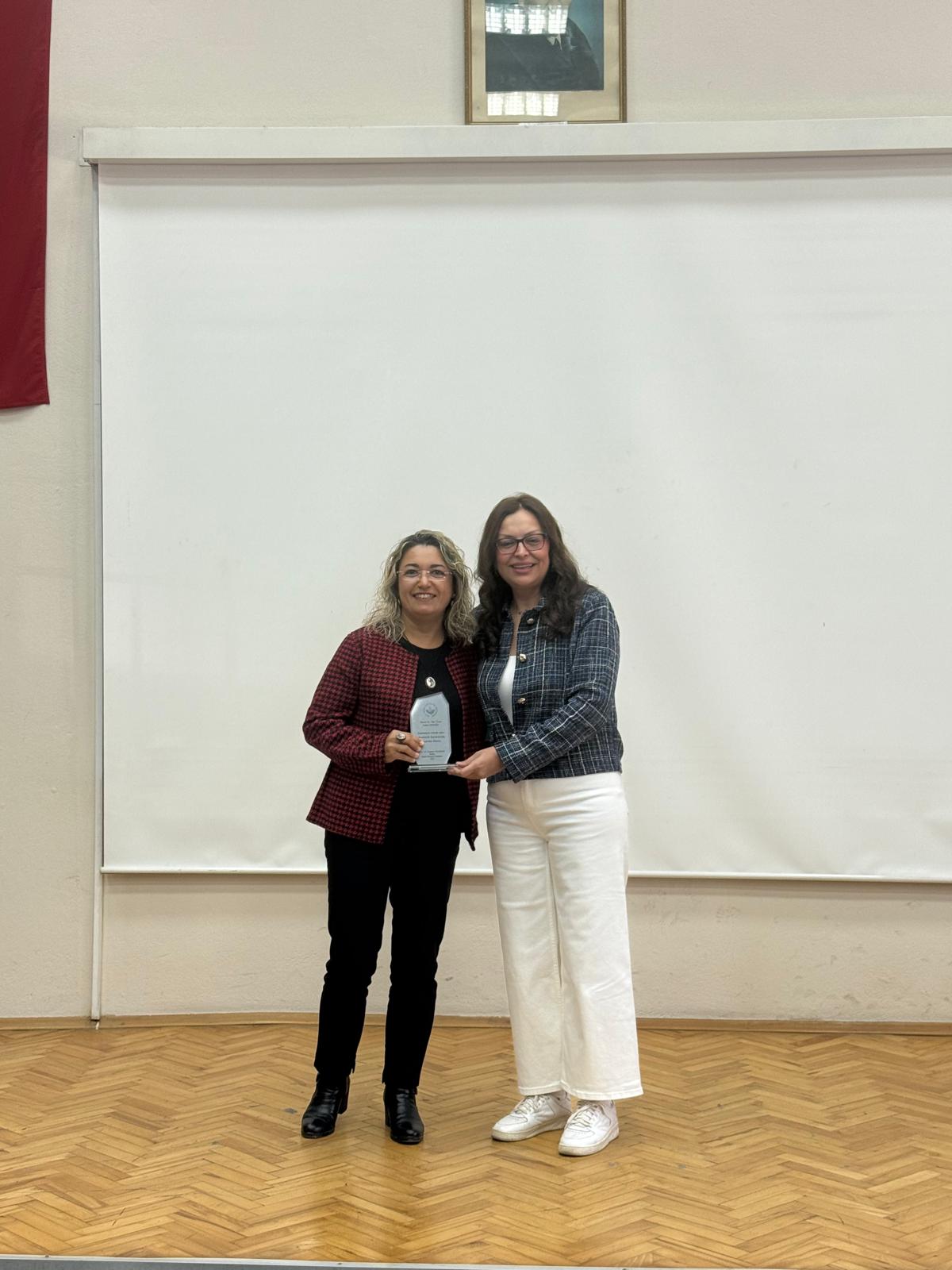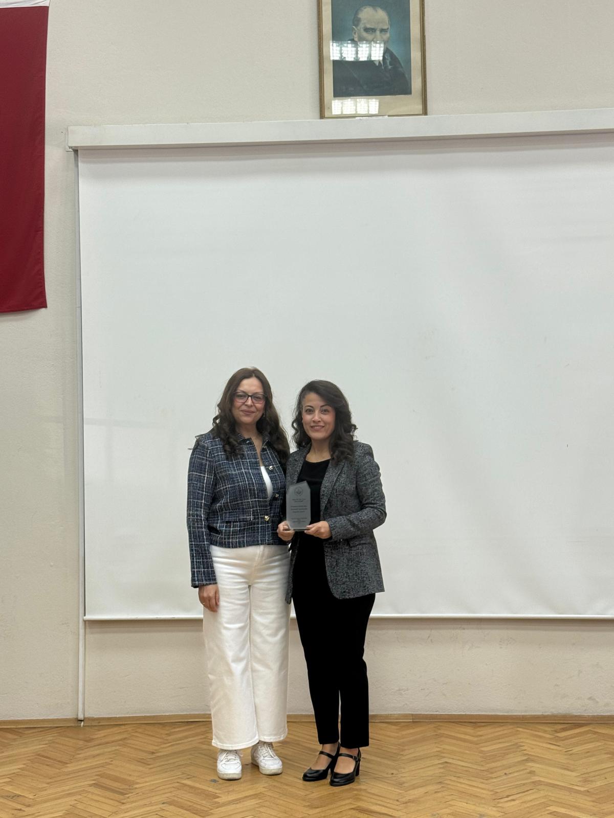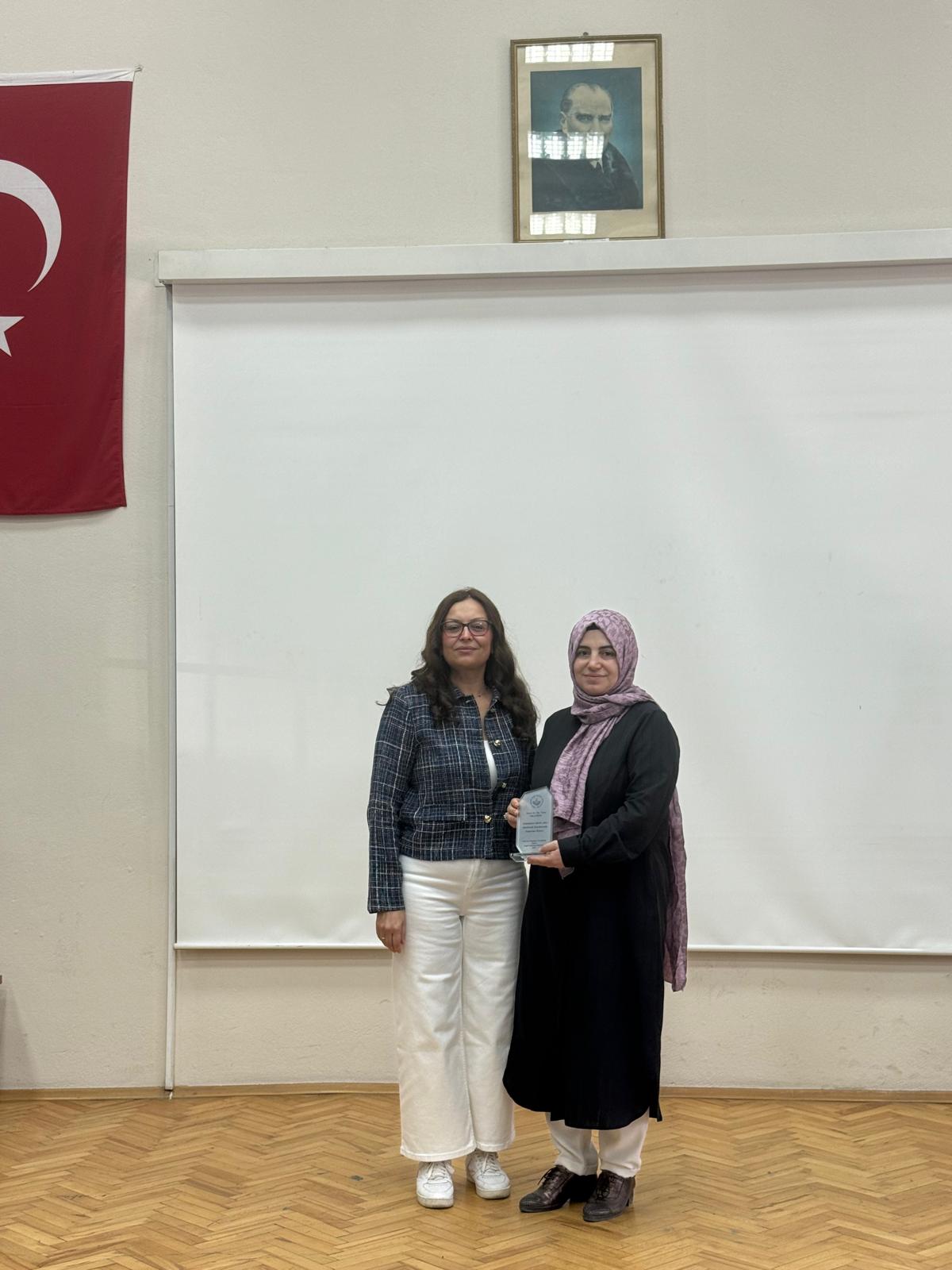 Akabinde son bir yıl içinde atama - yükseltmesi gerçekleşen öğretim üyelerine plaket takdimine geçildi. Fakültemiz Dekanı Prof. Dr. Nazmiye YILDIRIM tarafından Prof. Dr. Özlem ÇINAR ÖZDEMİR’e, Prof. Dr. Nuriye ÖZENGİN’e, Doç. Dr. Nurhan ÇİNGÖL’e, Doç. Dr. Ramazan KURUL’a, Doç. Dr. Ömer Osman PALA’ya, Dr. Öğr. Üyesi Ümmühan YİĞİT’e, Dr. Öğr. Üyesi Eda ÇEKER’e, Dr. Öğr. Üyesi Seher ZENGİN’e, Dr. Öğr. Üyesi Ebru ÇELEBİ’ye ve Dr. Öğr. Üyesi Elif GENÇER ŞENDUR’a plaketleri takdim edildi.